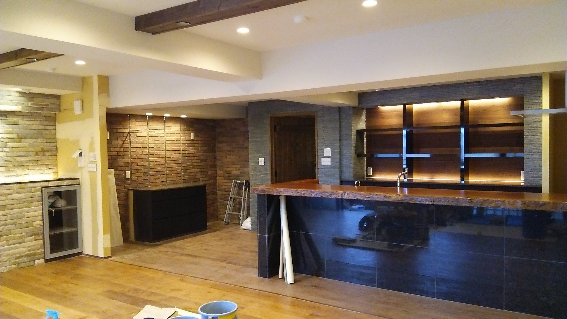 私たちの根底にあるのは、確かな大工の技術です。神社仏閣の施工に見られるような「釘を使わずに木を組む」伝統技法から、特殊な形状の古材(丸太など)を加工して美しい梁を生み出す技術まで、高度な職人技を有しています。また、決して既製品だけに頼ることはありません。「愛猫がついてこないよう、特殊な幅の階段に合わせた3枚扉が欲しい」「手持ちのアンティーク家具の高さや雰囲気にぴったり合う台を作ってほしい」といった細かなご要望にも、豊富なアイデアの引き出しを開け、一から造作して完璧にお応えします。